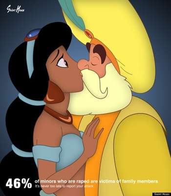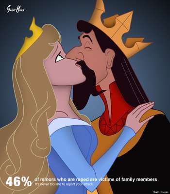 Pesquisas revelam que 46% das crianças violentadas são vítimas de membros da família. Os dados acompanham as ilustrações de clássicos da Disney que foram escolhidos para atrair a atenção do público, reunindo personagens de A Pequena Sereia, Aladin e A Bela Adormecida.