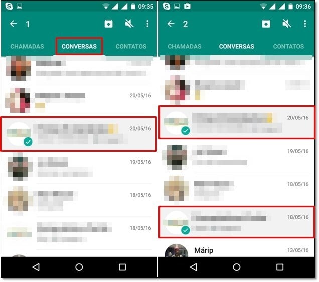 1. Selecione os grupos que deseja excluir, pressionando o dedo sobre um dos grupos – as salas escolhidas serão exibidas através de uma marcação em verde. Depois, vá marcando todos os demais grupos.
