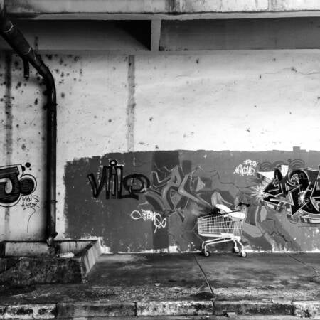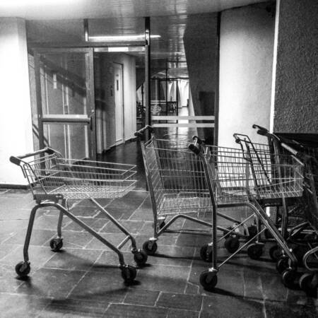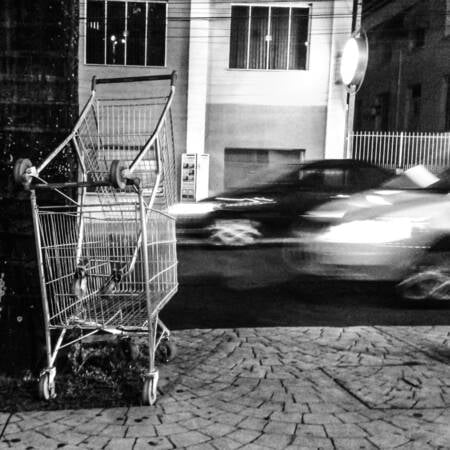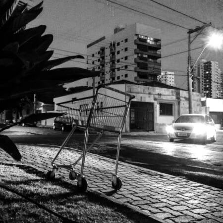 Os registros foram feitos durante o último ano na cidade de Araraquara/SP – situação perfeitamente reproduzível em todas as cidades brasileiras – e apresentam carrinhos de supermercados levados das lojas pelos clientes e posteriormente abandonados nas ruas ou absorvidos indevidamente por condomínios residenciais. As fotos são quadradas, passando a mensagem de igualdade entre os lados, bem contrastadas e sem cor: “preto no branco” como a mensagem deve ser.