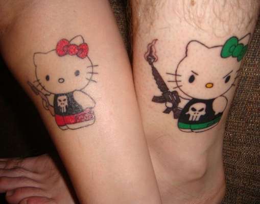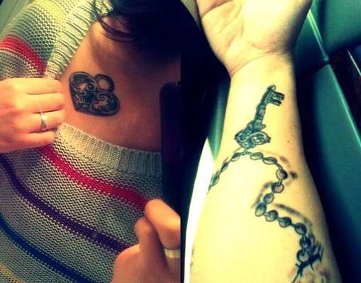 O site Acid Cow selecionou diversas tatuagens curiosas de jovens casais apaixonados. Os desenhos, que podem (ou não) servir de inspiração, vão desde a combinação conhecida de chave e coração até variações da personagem infantil Hello Kitty.