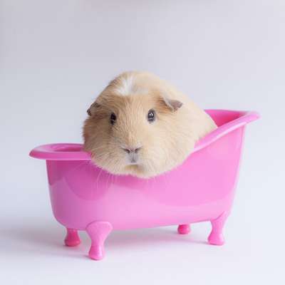 Veja este animal de estimação. Este é Booboo, que pesa cerca de 1 kg e tem cerca de 2 anos de idade. Sua comida favorita é chicória e cenouras e ela adora passar seus dias comendo, dormindo e posando para a câmera.