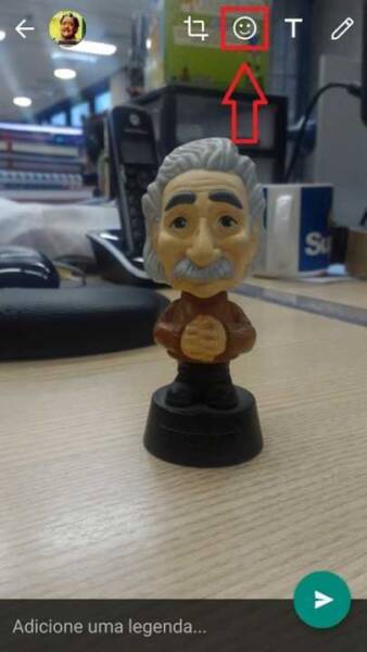 Quer adicionar stickers? Simplesmente bata a foto desejada e toque no “smile”, na parte superior da tela.