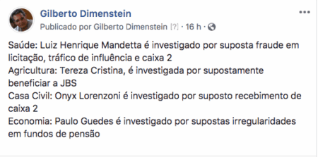 É um relato frio e sem graça sobre quem são os novos ministros investigados. Não diz que são culpados. Nem insinua.
