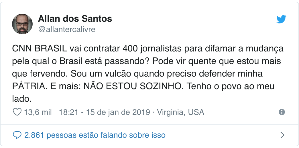 Ele disse que iria enfrentar sozinho a CNN, que vai montar uma operação no Brasil.