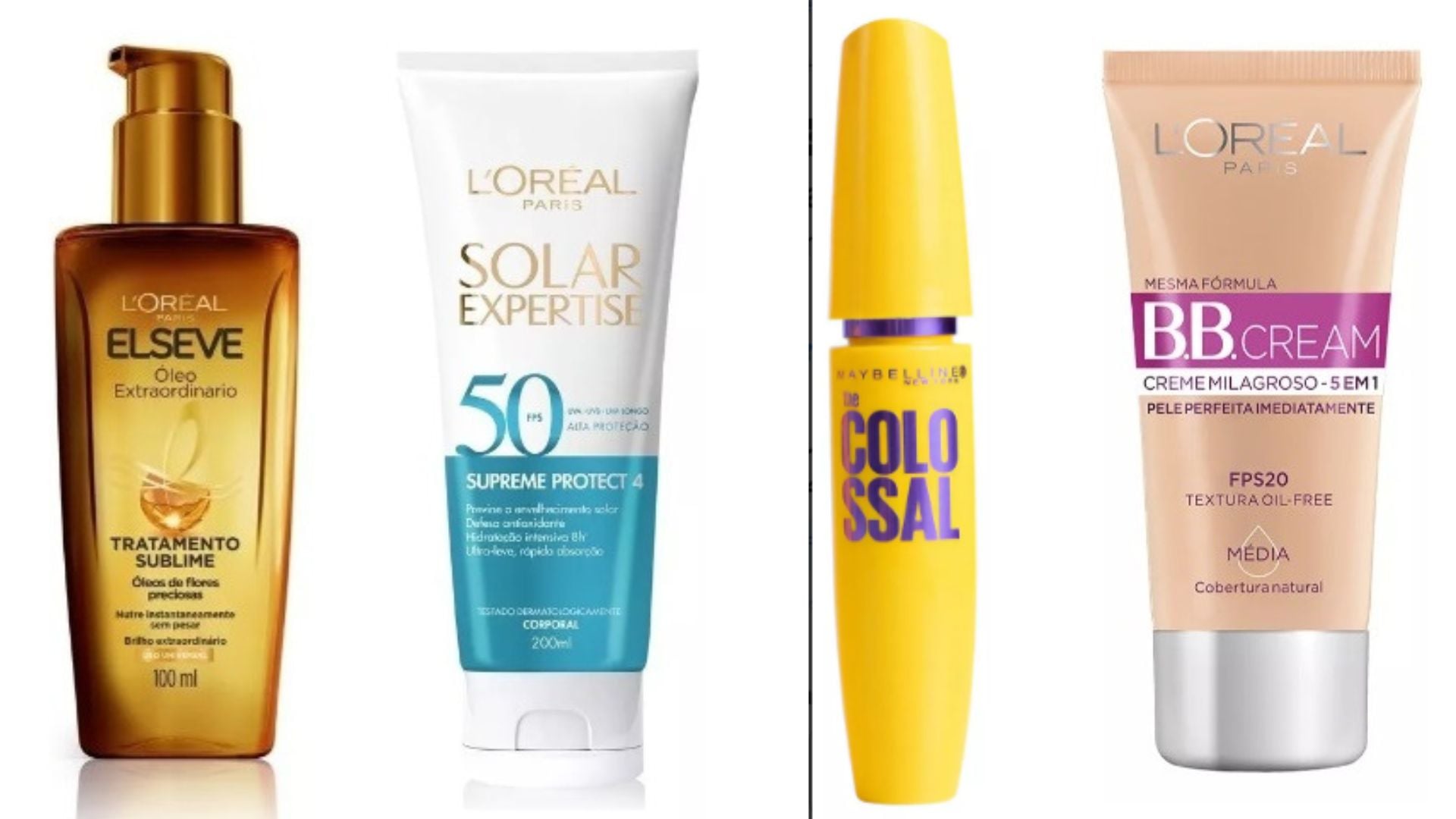 Ah! E várias linhas estão no precinho: Maybelline, L’Oréal Paris, Elseve, Garnier, Maybelline New York, L’Oréal e Elvive.