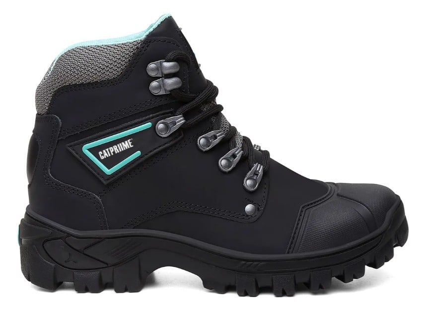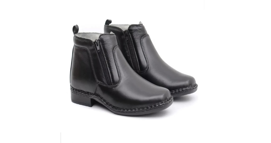 Feito em couro, o calçado conta com palmilha em gel anatômica. O forro é com tecido espumado e antibacteriano e o solado de borracha é colado e costurado. Além disso, o coturno é resistente à água.