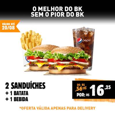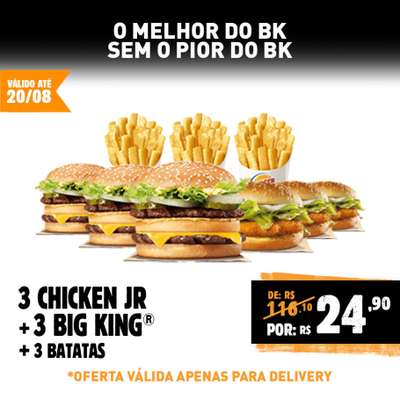 A ação “O melhor do BK, sem o pior do BK” é exclusiva para delivery. Para quem optar por fazer as refeições nos restaurantes da rede, vale lembrar que o Burger King está abrindo gradualmente em algumas regiões, de acordo com as orientações das autoridades e reforçando os protocolos de saúde necessários, e já conta com cerca de 85% de seus restaurantes abertos.