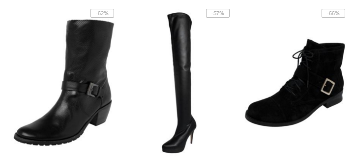 Botas femininas com 50% de desconto (veja aqui).