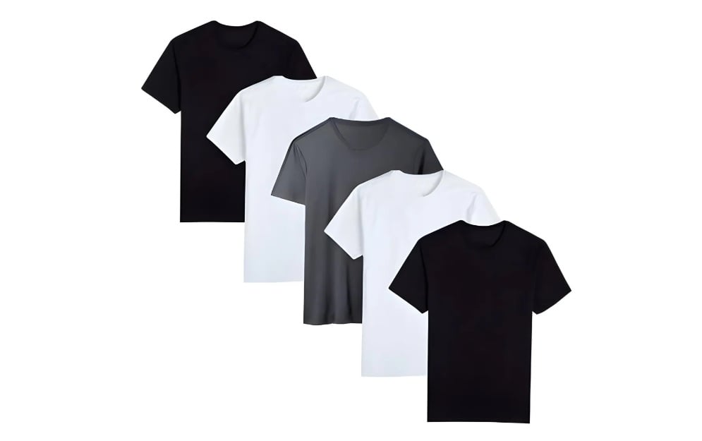 Você pode escolher o kit só com camisetas brancas; com opções brancas, pretas e cinzas; pretas, brancas e marinho; pretas e sortidas. E todas são 100% algodão, o que garante o conforto e a boa qualidade do produto.
