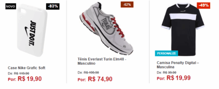 - Outlet Centauro com até 83% de desconto – Vários produtos como roupas, diversos tipos de tênis, patins, skates, entre outros. Tem até trampolim!