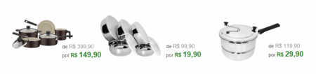 - Utilidades domésticas com até 85% de desconto na Ricardo Eletro – 50 itens, como panelas, facas, pratos, aparelhos de jantar e outros. Para ver a seção de descontos, é só clicar aqui.