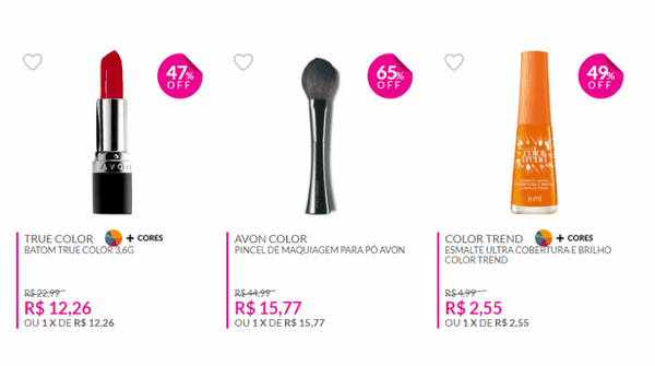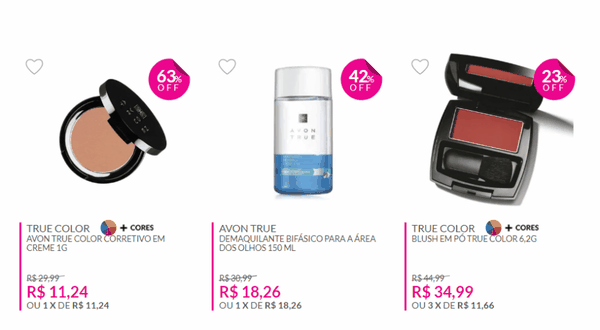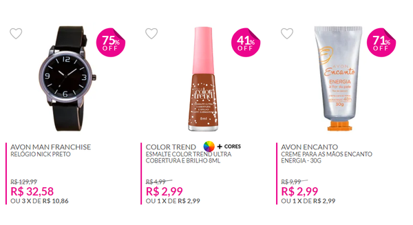 Que você é linda (e lindo) naturalmente nos já sabemos, então a dica é para quando você queira realçar ainda mais sua beleza no dia a dia ou em alguma ocasião especial! A Avon preparou algumas oportunidades bem legais, com descontos de até 75% nas compras de cosméticos pelo site da marca.