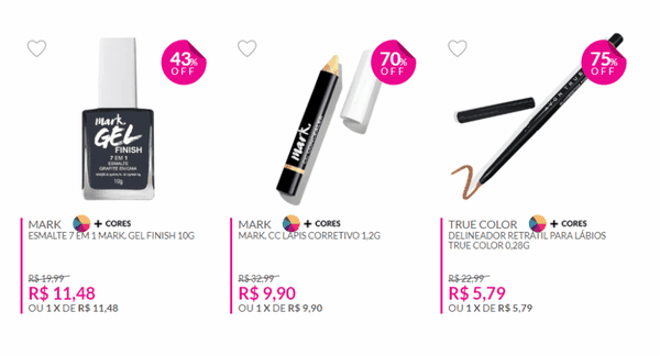 Tem batons, máscaras, delineadores, esmaltes, cremes e muitos outros itens com os precinhos mais baixos!