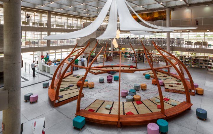 Ocupando área de 4 mil metros quadrados dentro do Parque Villa-Lobos, a biblioteca oferece um acervo formado por livros, revistas, jornais, livros eletrônicos, audiolivros, HQs, DVDs e CDs, incluindo livros em braile e falados, voltados para pessoas com deficiência. O ambiente chama a atenção e traz uma experiência agradável de leitura e aprendizado.