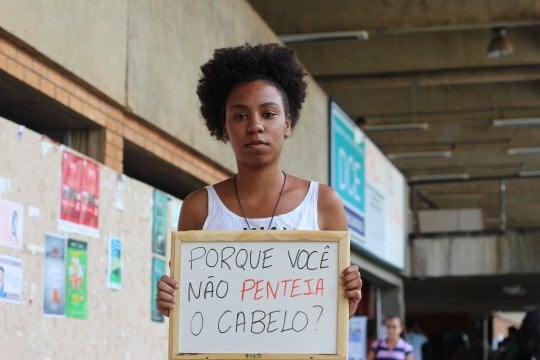 7. Um outro projeto toca em outra ferida aberta: o racismo dentro das universidades. Este ensaio mostra estudantes negros segurando frases preconceituosas que já ouviram.