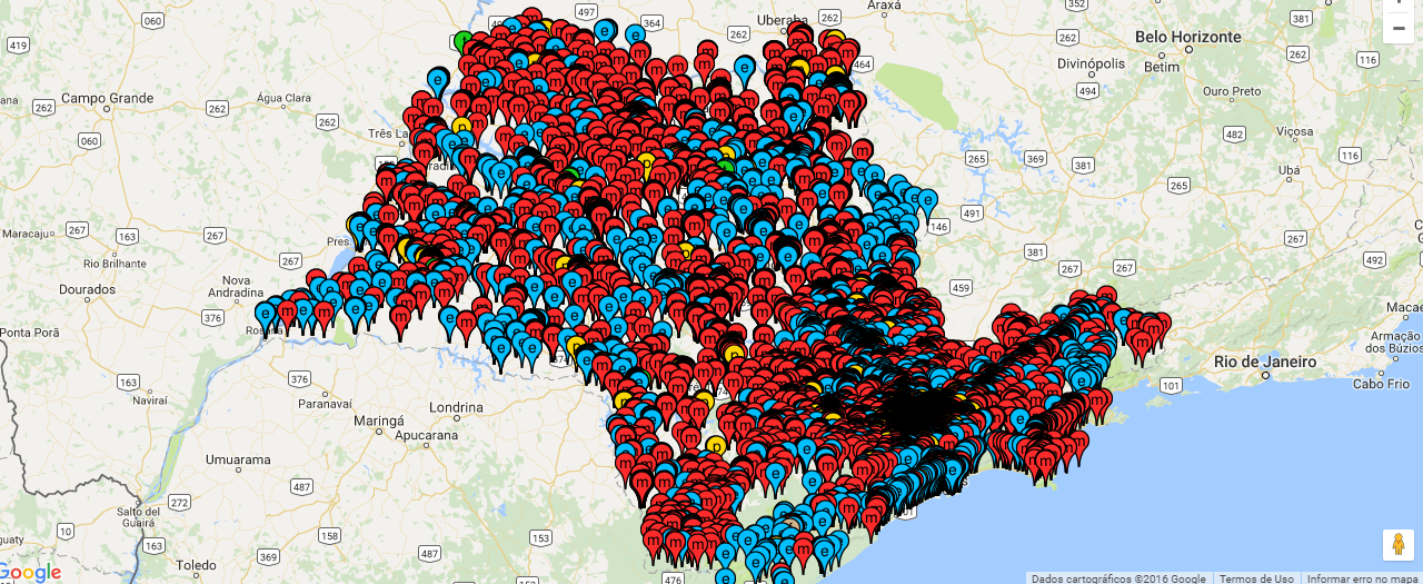 No link piloto, já disponível, é possível verificar a grande quantidade e proximidade das escolas. Alunos, professores, diretores e outros e servidores das escolas estaduais já podem acessar o quadro colaborativo e classificar os prédios clicando aqui.