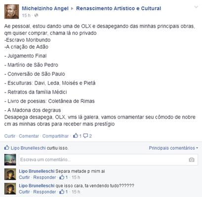 Mas, conheçam um professor do Ensino Médio no Rio de Janeiro, que driblou essa situação e fez os estudantes participarem mais das suas aulas, usando algo que os jovens conhecem muito bem: o Facebook. “Pedi que elas(es) imaginassem como seria o Renascimento Artístico e Cultural se houvesse Facebook. Como seriam as pessoas envolvidas? O que postariam? Como interagiriam?”, lembra o professor Pedro Henrique Castro.