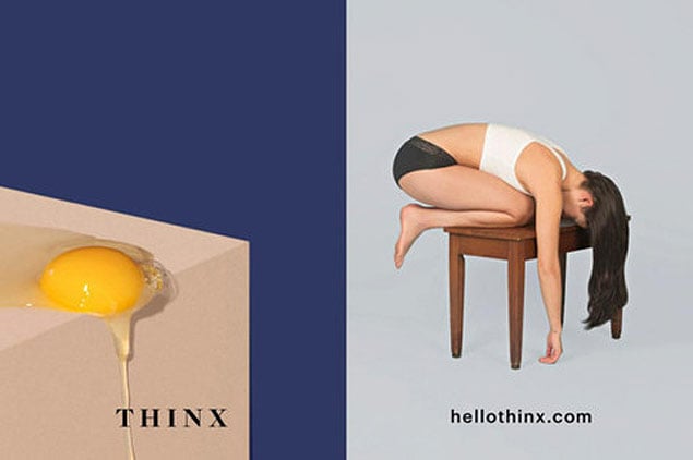 O anúncio mostra alimentos como gema de ovo ou meia toranja para aludir ao corpo feminino ou à menstruação. Em seu blog, a Thinx explicou que a criação tinha sido barrada pela agência do metrô, a Outfront Media.