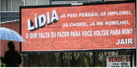 A empresa responsável pelo outdoor, Anco Digital, confirmou que uma mulher reservou o painel entre 6h e 9h de hoje, período de grande movimentação na via. A imagem com a foto da mensagem viralizou nas redes sociais.