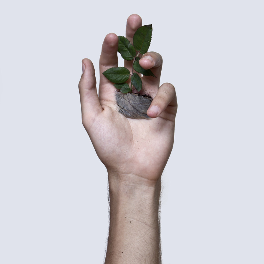 Para explorar o seu conceito de ‘corpo como tela’, David decidiu semear plantas na palma da sua mão. No chamado ‘Raices Aladas’, ele abriu uma camada da pele de sua mão e a preencheu com terra e folhagem.