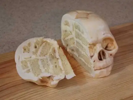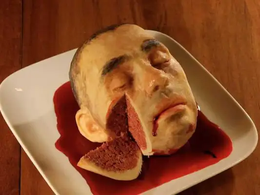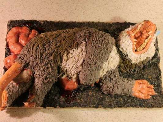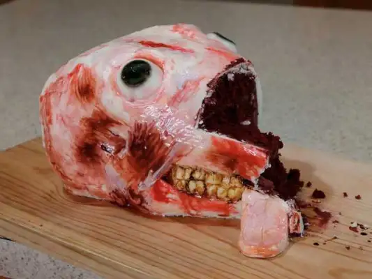 Ao invés de fazer doces bonitos e delicados dignos de posts no Instagram, ela decidiu assar bolos extremamente realistas. A massa pode ser confundida com partes internas humanas e a calda com sangue.