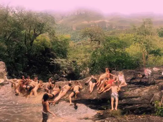 A Chapada dos Veadeiros é o destino perfeito para quem curte cachoeiras, pássaros, esportes radicais e até meditação. Esse foi o lugar escolhido por Gabriel Leone, de “Velho Chico”, a atriz e apresentadora Mônica Iozzi, Carolina Abras, Carla Salle, Maurício Destri, Rael Barja, Alejandro Claveaux,  Juliana Lohmann e Ícaro Silva passarem as férias. Os atores chegaram a posar nus em uma paisagem incrível: