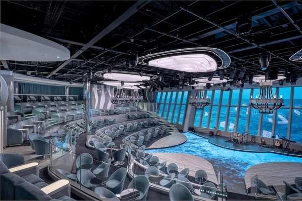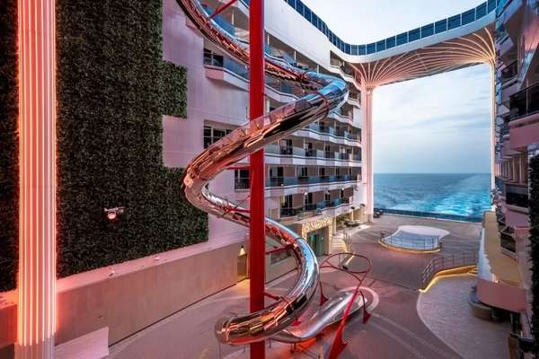 Uma ampla de passeio com vista para o mar reúne passageiros que cruzam as dependências do navio em meio a lojas e outras atrações que lembram um shopping a céu aberto. Ao centro do espaço coletivo está um longo tobogã com saída para o mar. E para os hóspedes mais selecionados há disponibilizado uma área exclusiva e luxuosa, que conta com uma escada adornada de cristais Swarovksi.