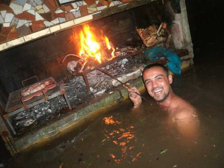 Entenda a história destes amigos num churrasco em plena enchente