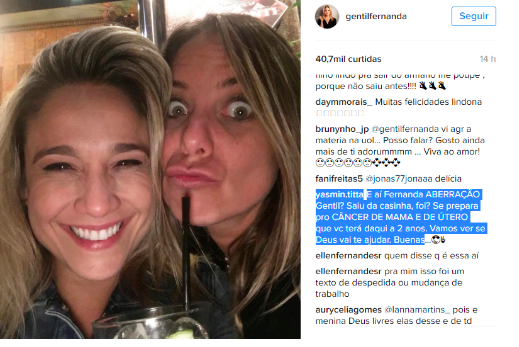 No Twitter, a maioria demonstrou apoio à jornalista da TV Globo, levando o nome da apresentadora à lista de termos mais comentados na rede de microblogs no mundo. Na conta mantida por Fernanda no Instagram, a maior parte dos internautas que comentou de forma positiva a foto em que ela aparece sorridente ao lado de Priscila, imagem divulgada nesta madrugada. Porém, nas duas plataformas, teve gente destilando ódio. Os posts de cunho homofóbicos foram rebatidos por pessoas que chegaram a questionar a religiosidade de quem perdeu tempo tecendo críticas ao novo casal.