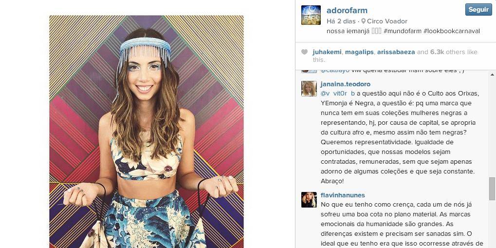 Ao mesmo tempo em que as redes sociais são responsáveis por resultados positivos para uma empresa, qualquer erro em uma postagem ou imagem pode representar um impacto violento para a imagem da marca. Na última terça-feira, a marca de grife Farm postou em seu Instagram a foto de uma modelo branca representando Iemanjá seguida da legenda: “Nossa Iemanjá #muitofarm #lookbookcarnaval”.