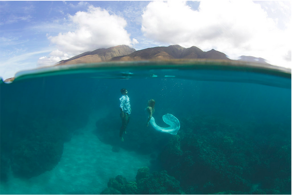 Fotógrafos capturam imagens de casamento embaixo d’água
