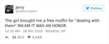 A garota me deu um muffin de cortesia por tê-los “aguentado” SENHORITA, FOI UMA HONRA