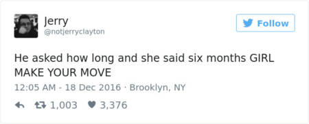 Ele perguntou há quanto tempo e ela respondeu: seis meses. GAROTA, SE MEXA!