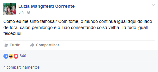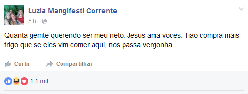 A conversa viralizou de tal modo que não demorou pra internet localizar o perfil pessoal de Dona Luzia e descobrir que, por lá, ela também mantém o mesmo senso de humor das conversas que teve com seu neto.