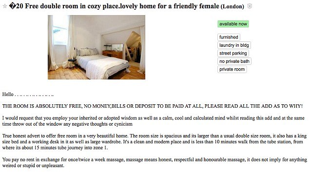 Se passando por uma estudante de 26 anos e recém-chegada a Londres, a jornalista Helen Croydon respondeu a diversos anúncios para descobrir mais sobre as contrapartidas dos classificados que oferecem acomodações gratuitas.