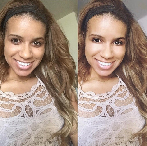 Em seguida, Alexa editou suas fotos adicionando um efeito de maquiagem, além de deixar os olhos e os dentes mais brancos. No app, ela fez o mesmo teste e deu “match” nos perfis dos 100 primeiros homens que apareceram na tela. O resultado? 73 deles se interessaram por ela, comprovando sua hipótese inicial.