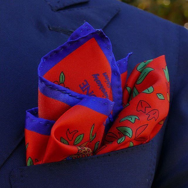 Não tenha medo de arriscar um lenço de cor forte ou com uma estampa chamativa, especialmente se a sua gravata for mais discreta (ou se você não estiver usando uma). Aliás, procure uma cor que combine com a gravata – mas não use as duas coisas no mesmo tom. Você também pode inovar na hora de dobrar o lenço, mudando a forma da pontinha que vai ficar para fora do bolso.