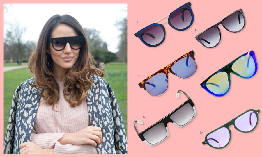 1. Jeepers Peepers sunglasses, $43; 2. ASOS “Flatbrow Clubmaster” sunglasses, $22; 3. Stella McCartney sunglasses, $119; 4. Sunday Somewhere “MVP” sunglasses, $260; 5. 3.1 Phillip Lim “Flat-Top” aviators, $270; 6. RVS “Leisure” sunglasses, $375
