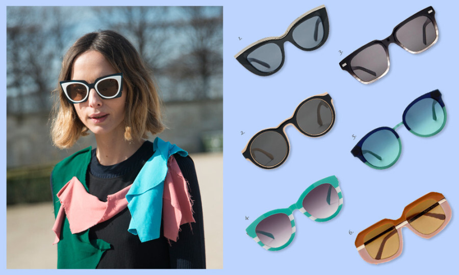 1. ASOS “Half Frame” cat eye sunglasses, $22; 2. Mykita x Maison Margiela sunglasses, $560; 3. Warby Parker “Winston” sunglasses, $95; 4. No Photos sunglasses, $41; 5. Tory Burch sunglasses, $195; 6. Karen Walker “Creeper” sunglasses, $329