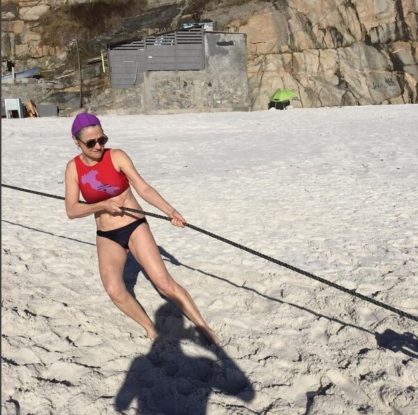 Ontem, dia 15, a atriz publicou uma foto na praia, em que exibe sua barriga tonificada e mostra que praticar esportes é algo para todas as idades.
