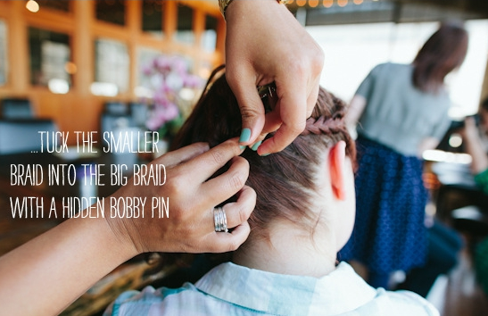Oitavo passo – Quanto todas as tranças estiverem feitas esconda a trança menor por baixo da grande e finalize com um grampo.