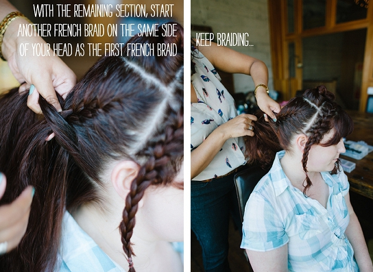 Quinto passo – Com o restante do cabelo comece outra trança francesa, do mesmo lado que a primeira trança, só que desta vez faça com que ela vá dando uma volta em torno da sua cabeça.