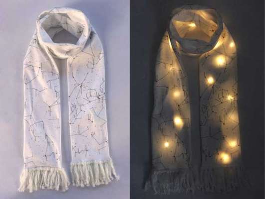 Este cachecol com certeza vai entrar para a sua lista de desejos natalinos (ainda que falte menos de uma semana para o Papai Noel vir à sua casa!). Equipado com luzes LED, ele não só te aquece como também acende constelações à sua volta.