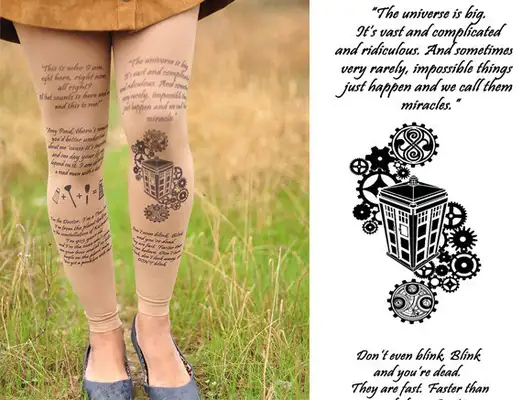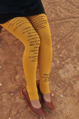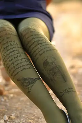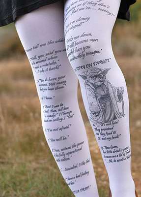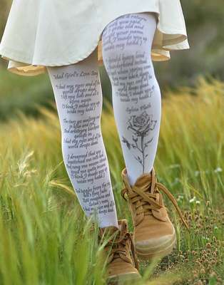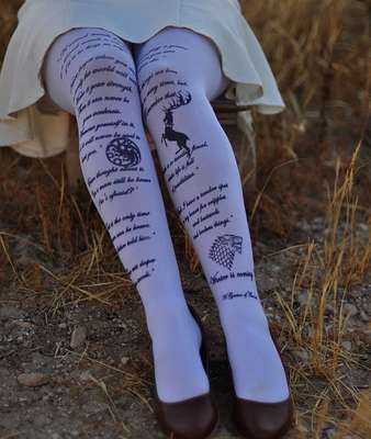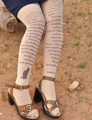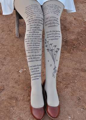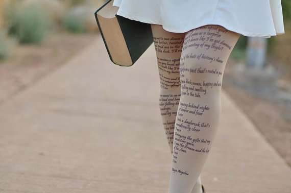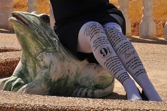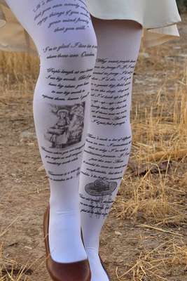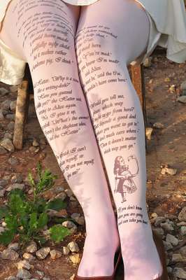 Depois das bolsas em formato de livros famosos, uma outra loja do Etsy está fazendo moda para quem ama ler. A ThighsShop vende meias-calças com passagens literárias. Tem Alice no País das Maravilhas, Edgar Allan Poe, Peter Pan, Harry Potter e até Game of Thrones.