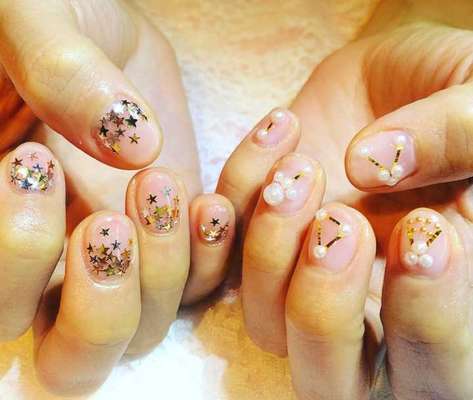A tendência vem conquistando o Instagram ao redor do mundo. Você pode fazer o visual usando várias técnicas: com fundo em degradê, galáxia ou cor sólida, criando estrelinhas de lantejoulas, pontinhos de tinta ou bolinhas de plástico… Tem ainda como conectar as estrelas com linhas, arame ou com tracejados de tinta. Quem manda é você.