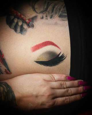 Há quem opte por fazer apenas um olho dramático, com cílios postiços e tudo. Mas algumas pessoas já tentaram fazer rostos completos, com direito a batom e contorno. Veja só: