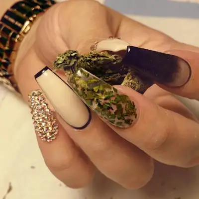 Nos Estados Unidos, alguns estados já legalizaram a erva para uso medicinal e recreativo. Assim, alguns salões de beleza estão colando pedacinhos da planta nas unhas dos seus clientes e finalizando com uma camada de esmalte de gel transparente.