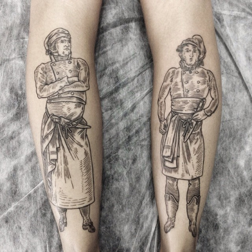 Abrindo mão de técnicas como o pontilhismo, muito em voga, e o sombreado tradicional, Rômulo utiliza a hachura como principal elemento de suas tatuagens. Seus belíssimos desenhos em P&B, feitos com firmes linhas finas, são inspirados por gravuras antigas e ilustrações de figuras como Claude Paradin, Gustav Doré, Abert Durer, Sebald Beham, entre outros. Plantas, animais e esculturas também fazem parte do universo criativo do artista. “Eu desenho desde criança, mas nunca gostei de colorir meus desenhos. Quando eu era ilustrador a etapa da colorização era meu calvário… Talvez por isso eu goste tanto de gravuras antigas, elas encontram soluções visuais incríveis sem usar nenhuma cor. Fico feliz de ter encontrado um público mesmo utilizando apenas tinta preta”.