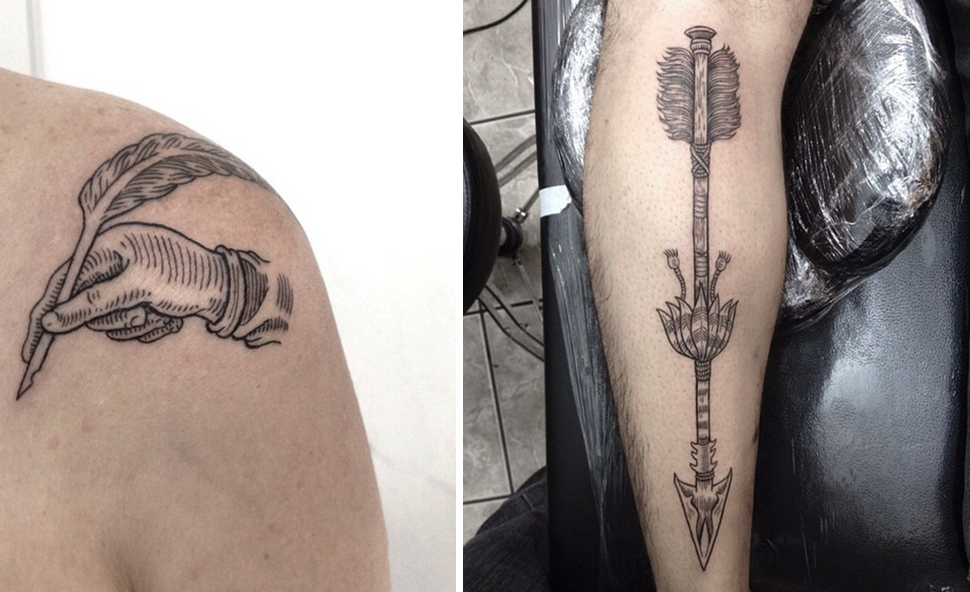 Utilizando hachuras, tatuador cria incríveis desenhos em P&B