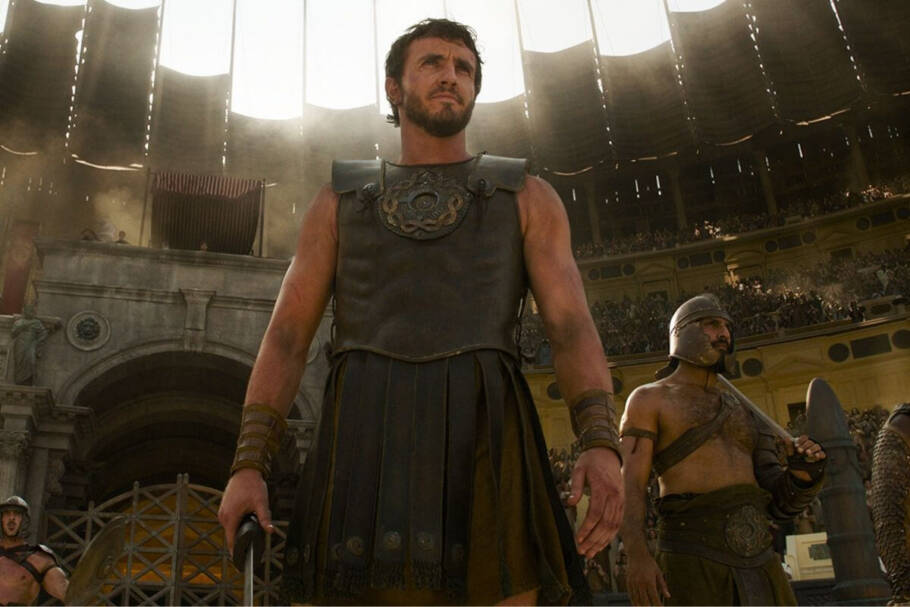 Ambientado 16 anos após os acontecimentos do primeiro filme, “Gladiador 2” acompanha a trajetória de Lucius, filho de Lucilla e sobrinho de Commodus — o herdeiro do antigo imperador que assassinou o próprio pai por preferir Maximus, um influente general romano, e usurpou o trono, condenando o militar à morte. Lucius, que admirava Maximus, carrega essa inspiração desde a juventude.